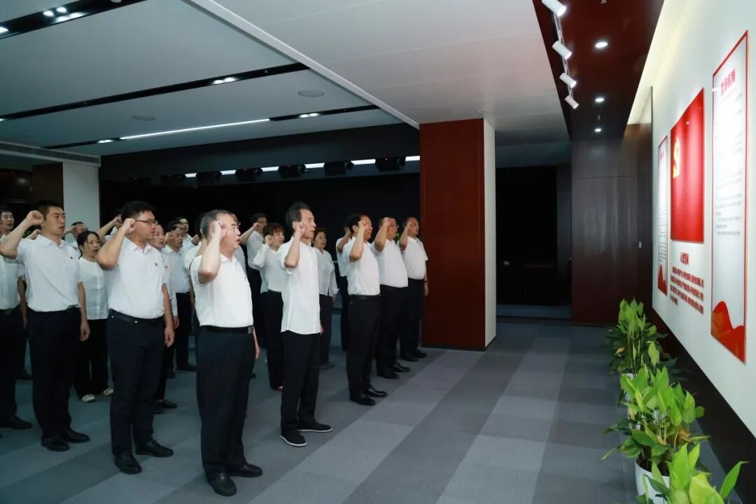2024年是中国共产党成立103周年。7月1日,中国施工企业管理协会党支部组织全体党员开展重温入党誓词活动。上午9时,协会全体党员整齐列队,面向鲜红的党旗,在党支部书记尚润涛同志的带领下,高举右拳,齐声重温入党誓词。